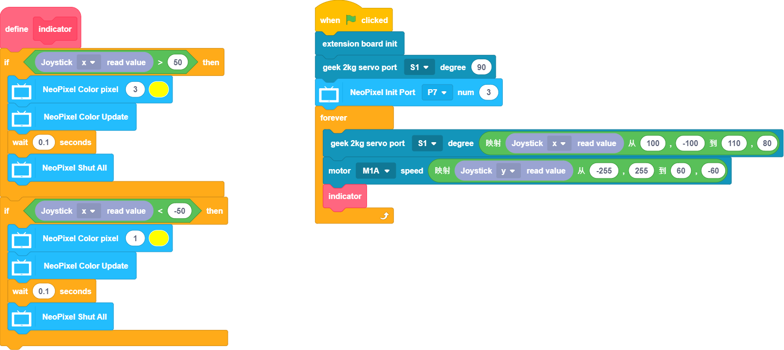 robot.geekServo2kg(1, valmap(Joystick().value('x'), 100, -100, 110, 80))