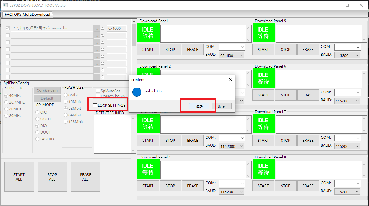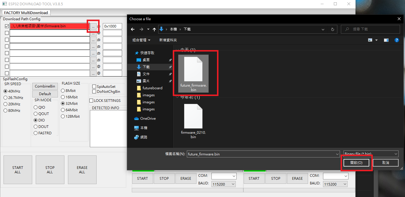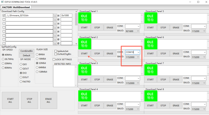Select the port where the Futureboard is connected and use a baud rate of 1152000, press start and wait.
