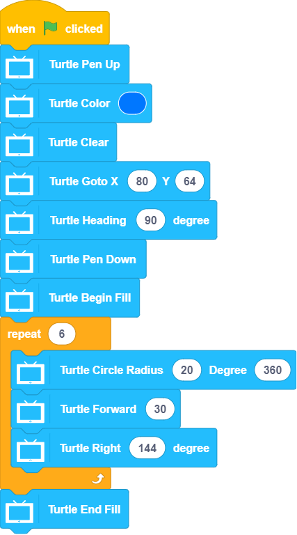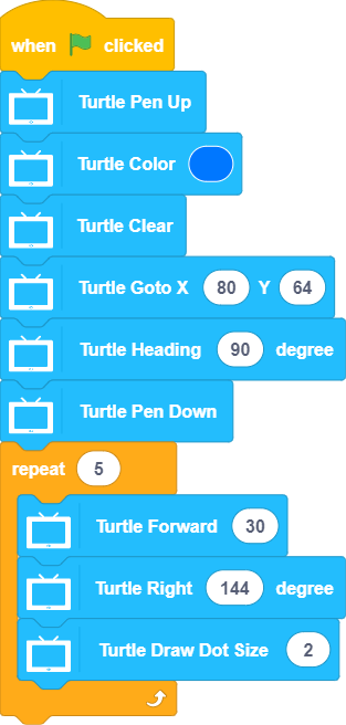 FutureboardCoding on KittenblockTurtleOn this pageTurtleTurtle is a popular tool for learning the basics of programming.Turtle BlocksNote: The fill function may not function as intended as the pixel specifications are below Turtle's requirements.Sample Program: Basic LinesSample Program: 5-Pointed StarSample Program: Flower
