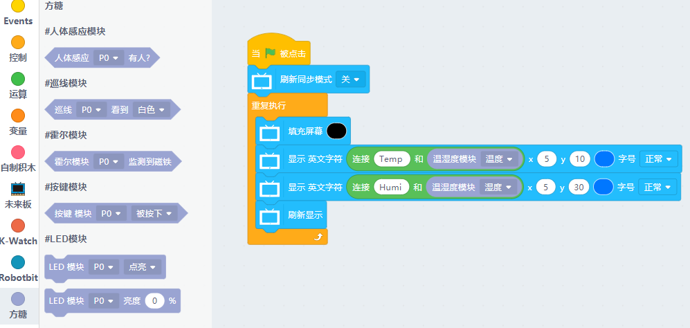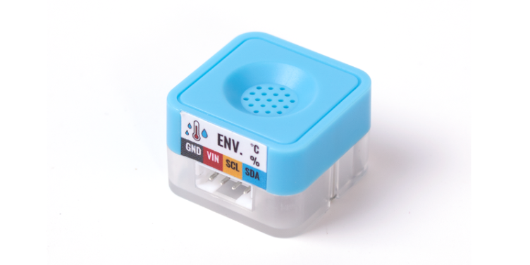 This is an environment sensor in the Sugar series, it has a greater degree of accuracy compared to the common DHT11 module. The pin holes on the back allow compatibility with plastic building bricks.