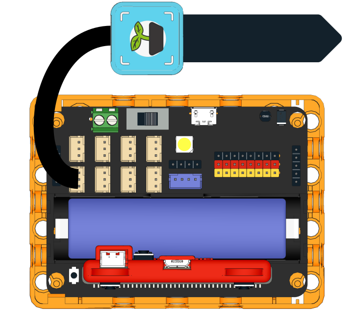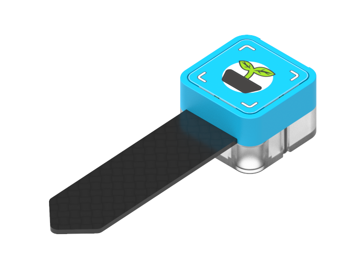 This is a soil moisture sensor module in the Sugar sensor series, the pin holes on the back allow compatibility with plastic building bricks.