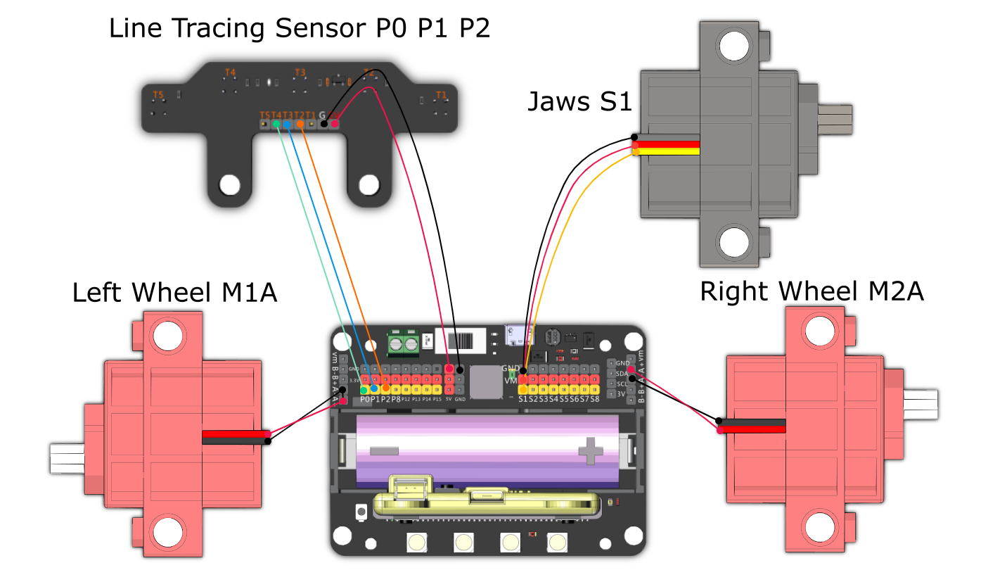 - Use the accelerometer for movement, press B to close or open the jaws.